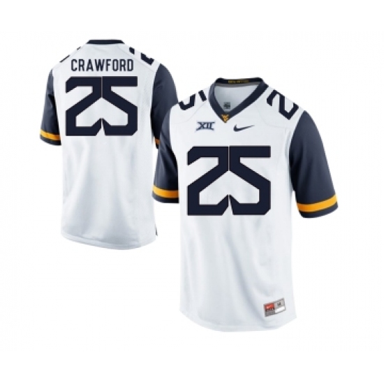 >West Virginia Mountaineers 25 Justin Crawford White College Football Jersey