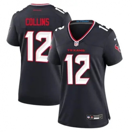 Women Houston Texans #12 Nico Collins Navy 2024 Alternate F U S E Vapor Stitched Jersey