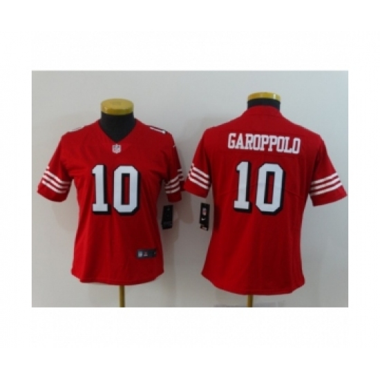>Women San Francisco 49ers #10 Jimmy Garoppolo Limited Red Rush Vapor Untouchable Football Jerseys