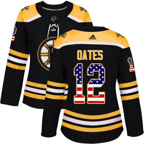 Women's Adidas Boston Bruins #12 Adam Oates Authentic Black USA Flag Fashion NHL Jersey