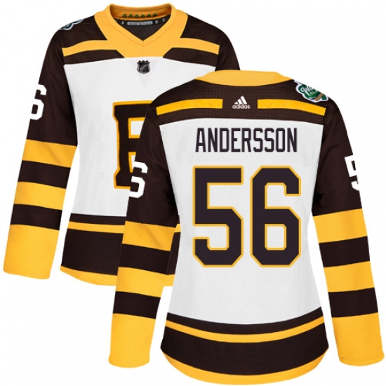 >Women's Adidas Boston Bruins #56 Axel Andersson Authentic White 2019 Winter Classic NHL Jersey