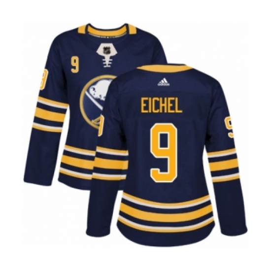>Women's Adidas Buffalo Sabres #9 Jack Eichel Authentic Navy Blue Home NHL Jersey