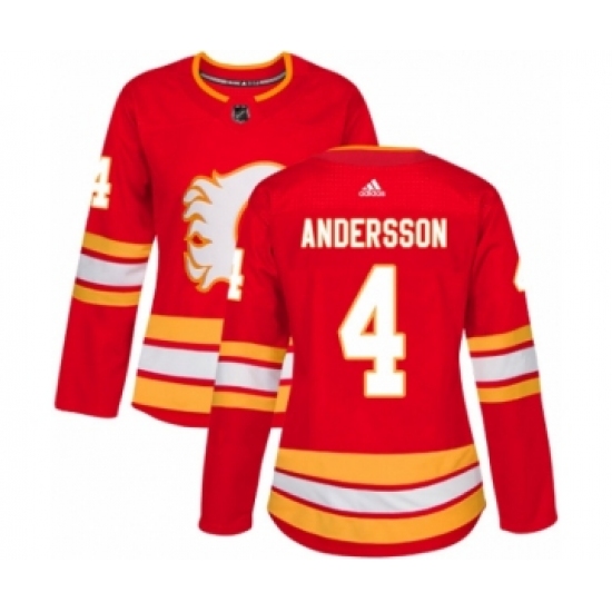 >Women's Adidas Calgary Flames #4 Rasmus Andersson Premier Red Alternate NHL Jersey