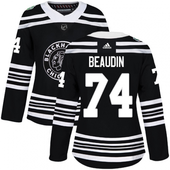 Women's Adidas Chicago Blackhawks #74 Nicolas Beaudin Authentic Black 2019 Winter Classic NHL Jersey