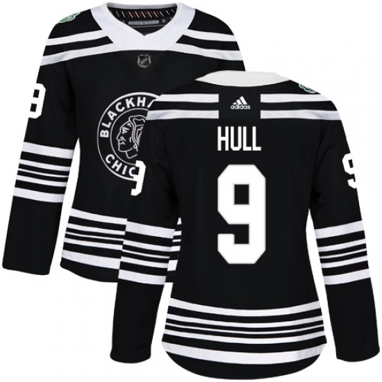 Women's Adidas Chicago Blackhawks #9 Bobby Hull Authentic Black 2019 Winter Classic NHL Jersey