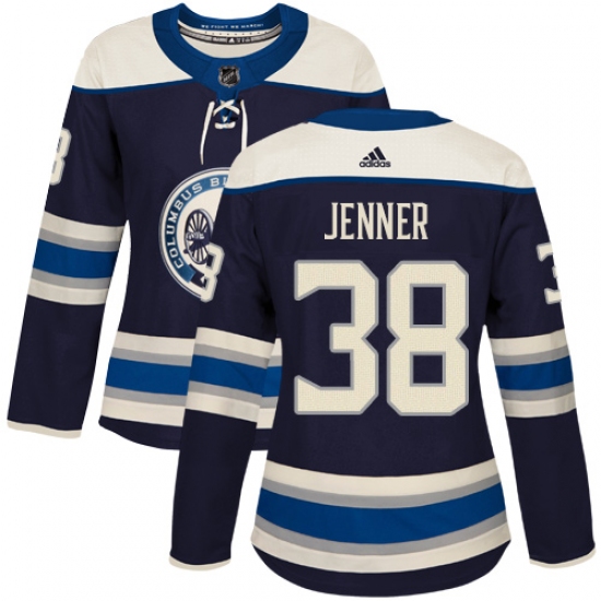 >Women's Adidas Columbus Blue Jackets #38 Boone Jenner Authentic Navy Blue Alternate NHL Jersey