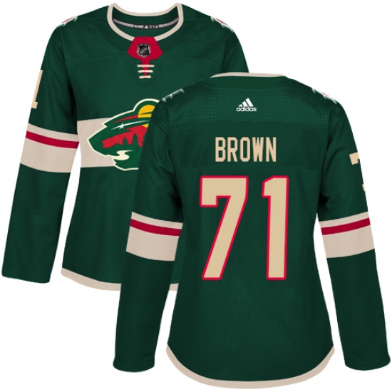 >Women's Adidas Minnesota Wild #71 J T Brown Premier Green Home NHL Jersey
