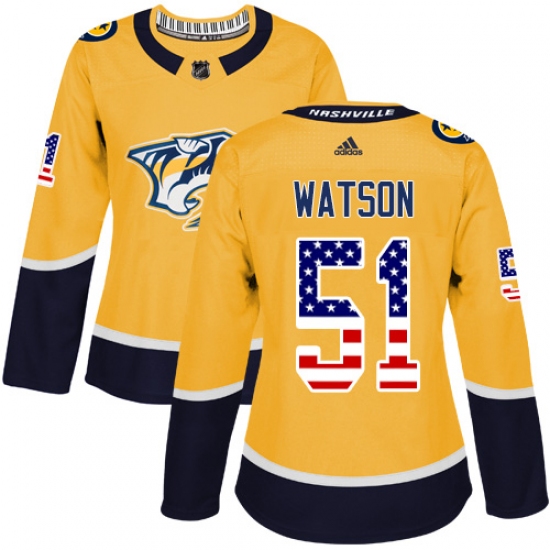 Home>NHL>Nashville Predators>Austin Watson>Women's Adidas Nashville Predators #51 Austin Watson Authentic Gold USA Flag Fashion NHL Jersey