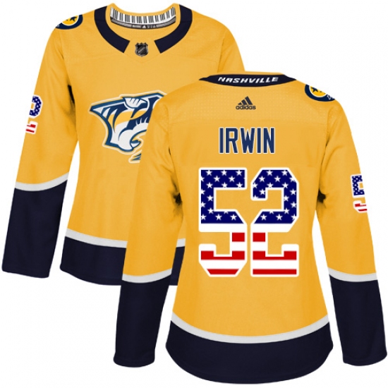 Home>NHL>Nashville Predators>Matt Irwin>Women's Adidas Nashville Predators #52 Matt Irwin Authentic Gold USA Flag Fashion NHL Jersey
