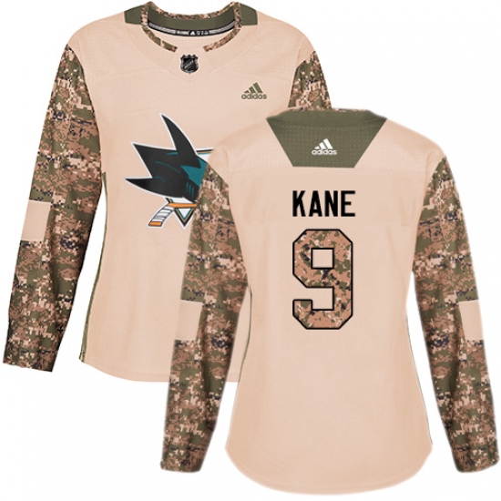 Women's Adidas San Jose Sharks #9 Evander Kane Authentic Camo Veterans Day Practice NHL Jersey