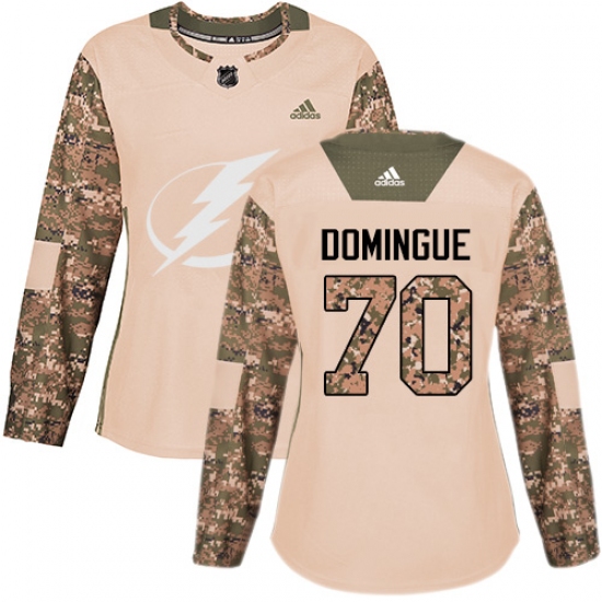 >Women's Adidas Tampa Bay Lightning #70 Louis Domingue Authentic Camo Veterans Day Practice NHL Jersey