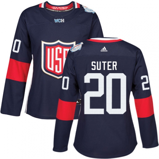 Women's Adidas Team USA #20 Ryan Suter Premier Navy Blue Away 2016 World Cup Hockey Jersey