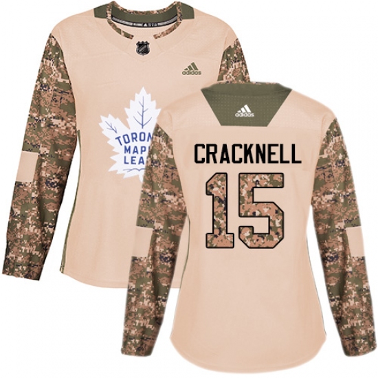 >Women's Adidas Toronto Maple Leafs #15 Adam Cracknell Authentic Camo Veterans Day Practice NHL Jersey