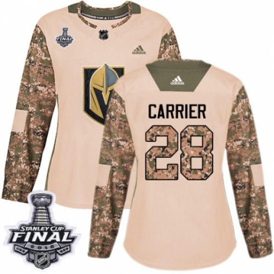 >Women's Adidas Vegas Golden Knights #28 William Carrier Authentic Camo Veterans Day Practice 2018 Stanley Cup Final NHL Jersey