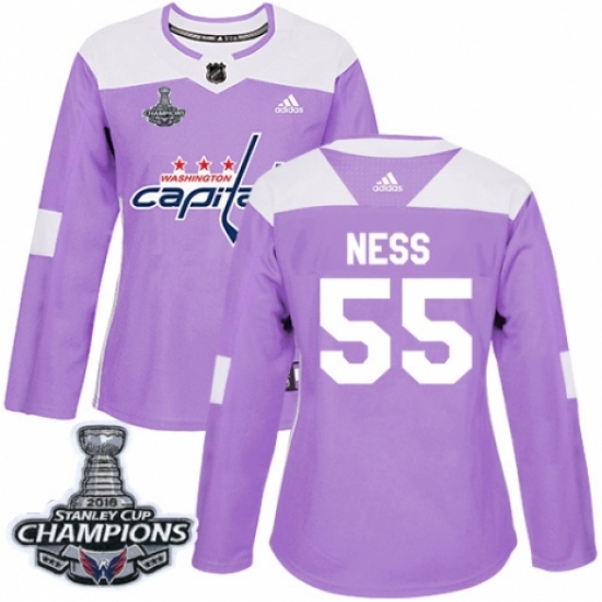 Women's Adidas Washington Capitals #55 Aaron Ness Authentic Purple Fights Cancer Practice 2018 Stanley Cup Final Champions NHL Jersey