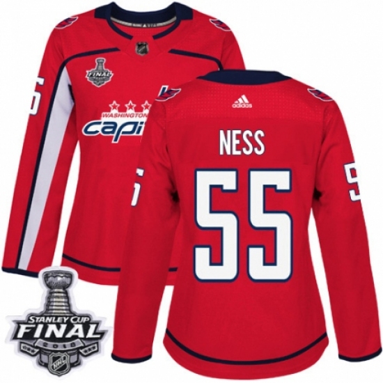 Women's Adidas Washington Capitals #55 Aaron Ness Authentic Red Home 2018 Stanley Cup Final NHL Jersey
