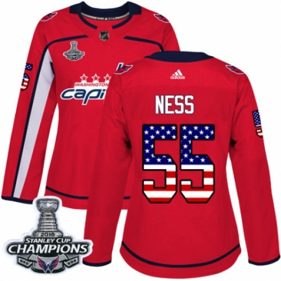 Women's Adidas Washington Capitals #55 Aaron Ness Authentic Red USA Flag Fashion 2018 Stanley Cup Final Champions NHL Jersey