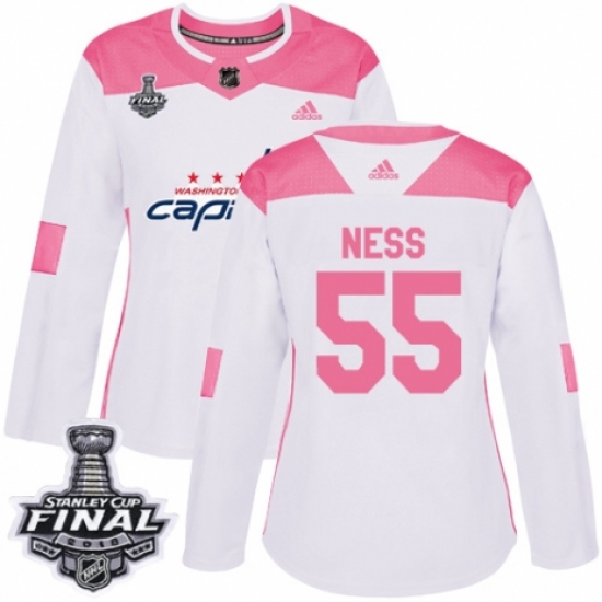 Women's Adidas Washington Capitals #55 Aaron Ness Authentic White/Pink Fashion 2018 Stanley Cup Final NHL Jersey