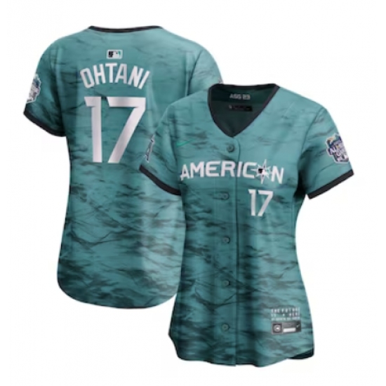>Women's American League #17 Shohei Ohtani Nike Teal 2023 MLB All-Star Game Limited Player Jersey