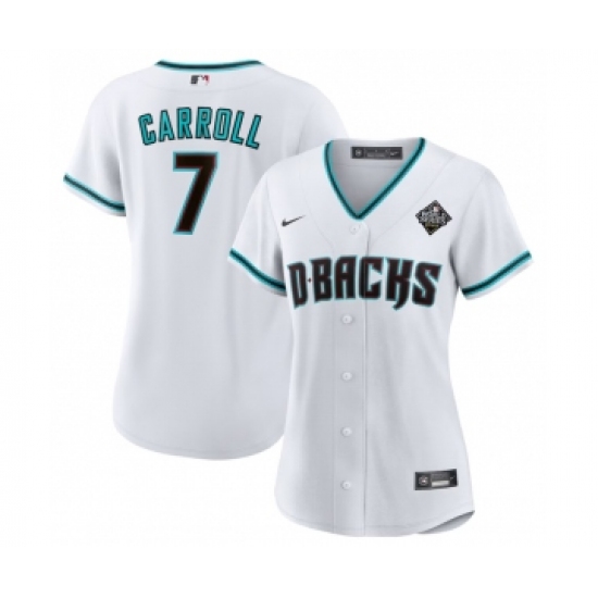 Women's Arizona Diamondbacks #7 Corbin Carroll White 2023 World Series Stitched Baseball Jersey