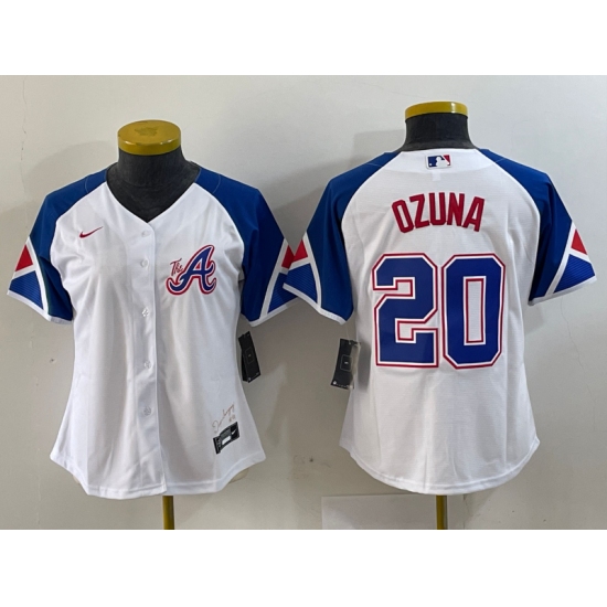 >Women's Atlanta Braves #20 Marcell Ozuna Number White 2023 City Connect Cool Base Stitched Jersey