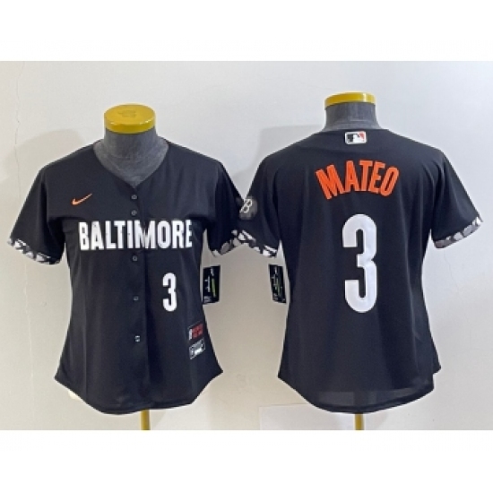 >Women's Baltimore Orioles #3 Jorge Mateo Number Black 2023 City Connect Cool Base Stitched Jersey