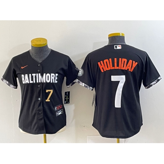 Women's Baltimore Orioles #7 Jackson Holliday Number Black 2023 City Connect Cool Base Stitched Jersey