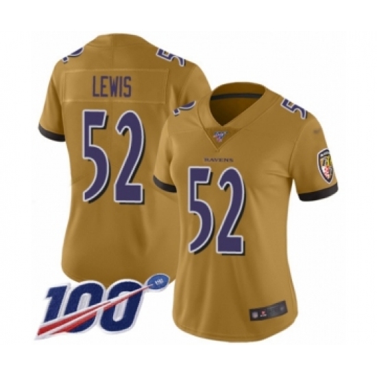>Women's Baltimore Ravens #52 Ray Lewis Limited Gold Inverted Legend 100th Season Football Jersey