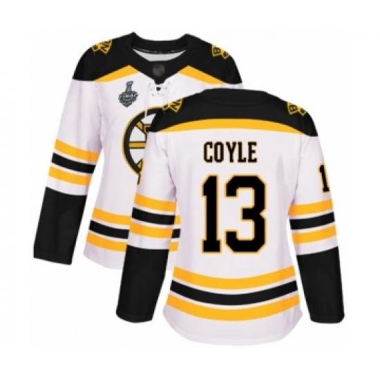 Women's Boston Bruins #13 Charlie Coyle Authentic White Away 2019 Stanley Cup Final Bound Hockey Jersey