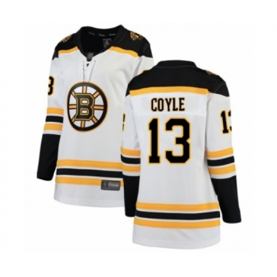 Women's Boston Bruins #13 Charlie Coyle Authentic White Away Fanatics Branded Breakaway Hockey Jersey