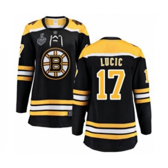 >Women's Boston Bruins #17 Milan Lucic Authentic Black Home Fanatics Branded Breakaway 2019 Stanley Cup Final Bound Hockey Jersey