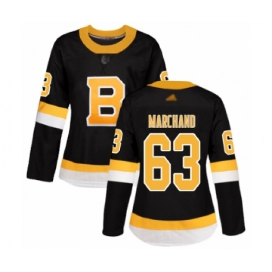 Women's Boston Bruins #63 Brad Marchand Authentic Black Alternate Hockey Jersey