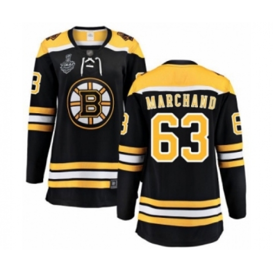 >Women's Boston Bruins #63 Brad Marchand Authentic Black Home Fanatics Branded Breakaway 2019 Stanley Cup Final Bound Hockey Jersey