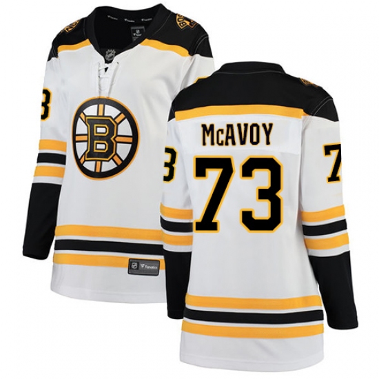 Women's Boston Bruins #73 Charlie McAvoy Authentic White Away Fanatics Branded Breakaway NHL Jersey