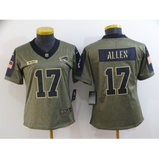 >Women's Buffalo Bills #17 Josh Allen Nike Olive 2021 Salute To Service Limited Player Jersey