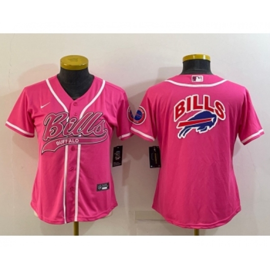 Women's Buffalo Bills Pink Team Big Logo With Patch Cool Base Stitched Baseball Jersey