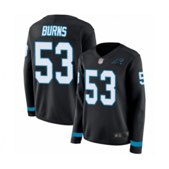 >Women's Carolina Panthers #53 Brian Burns Limited Black Therma Long Sleeve Football Jersey