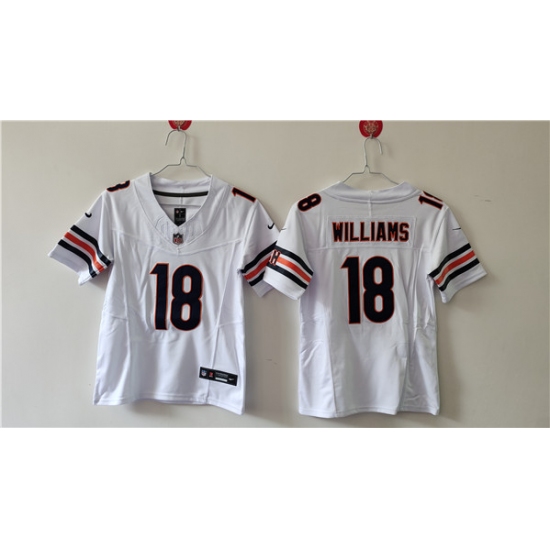 Women's Chicago Bears #18 Caleb Williams White 2024 Draft F.U.S.E. Vapor Football Stitched Jersey