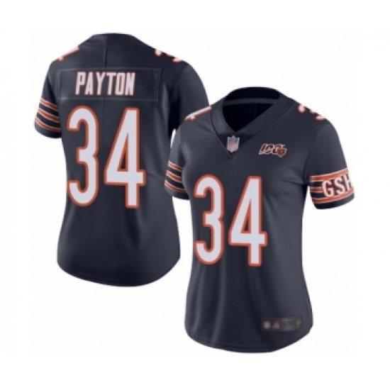 Women's Chicago Bears #34 Walter Payton Navy Blue Team Color 100th Season Limited Football Jersey