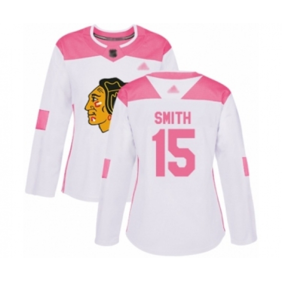 >Women's Chicago Blackhawks #15 Zack Smith Authentic White Pink Fashion Hockey Jersey