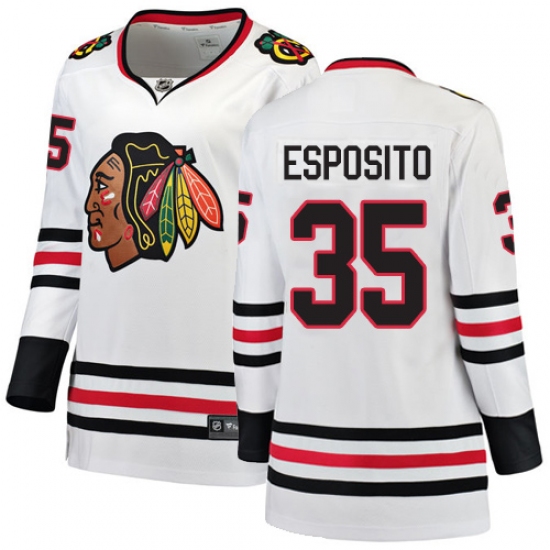 Women's Chicago Blackhawks #35 Tony Esposito Authentic White Away Fanatics Branded Breakaway NHL Jersey