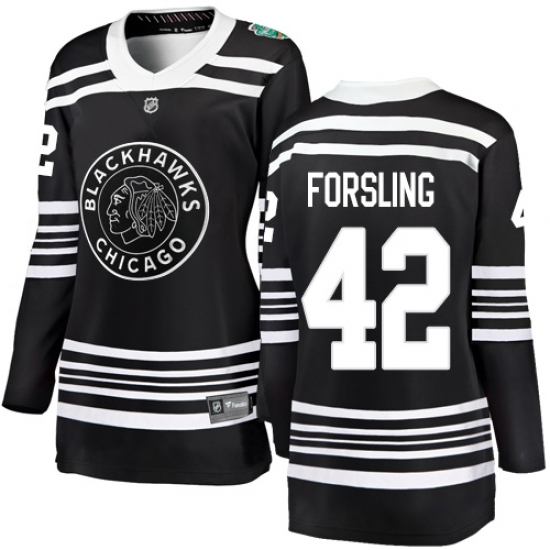 >Women's Chicago Blackhawks #42 Gustav Forsling Black 2019 Winter Classic Fanatics Branded Breakaway NHL Jersey