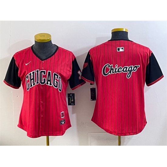Womens Chicago White Sox Team Big Logo Red Black 2025 City Connect Limited Stitched Baseball Jersey(Run Small)