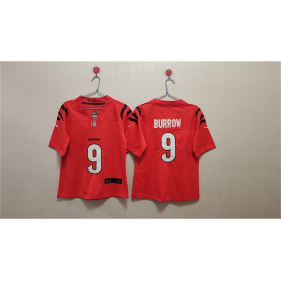 >Women's Cincinnati Bengals #9 Joe Burrow Orange Vapor Football Stitched Jersey(Run Small)