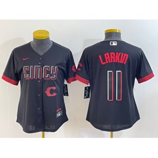 >Women's Cincinnati Reds #11 Barry Larkin Black 2023 City Connect Cool Base Stitched Jersey1
