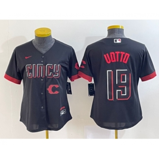 Women's Cincinnati Reds #19 Joey Votto Black 2023 City Connect Cool Base Stitched Jersey1