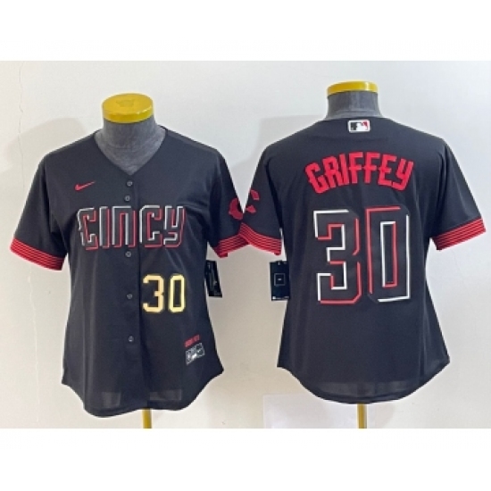 Women's Cincinnati Reds #30 Ken Griffey Jr Black 2023 City Connect Cool Base Stitched Jersey