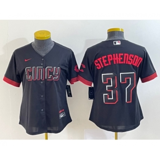 >Women's Cincinnati Reds #37 Tyler Stephenson Black 2023 City Connect Cool Base Stitched Jersey1