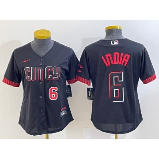Women's Cincinnati Reds #6 Jonathan India Number Black 2023 City Connect Cool Base Stitched Jersey 2