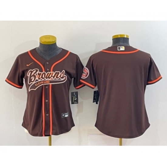 >Women's Cleveland Browns Blank Brown With Patch Cool Base Stitched Baseball Jersey